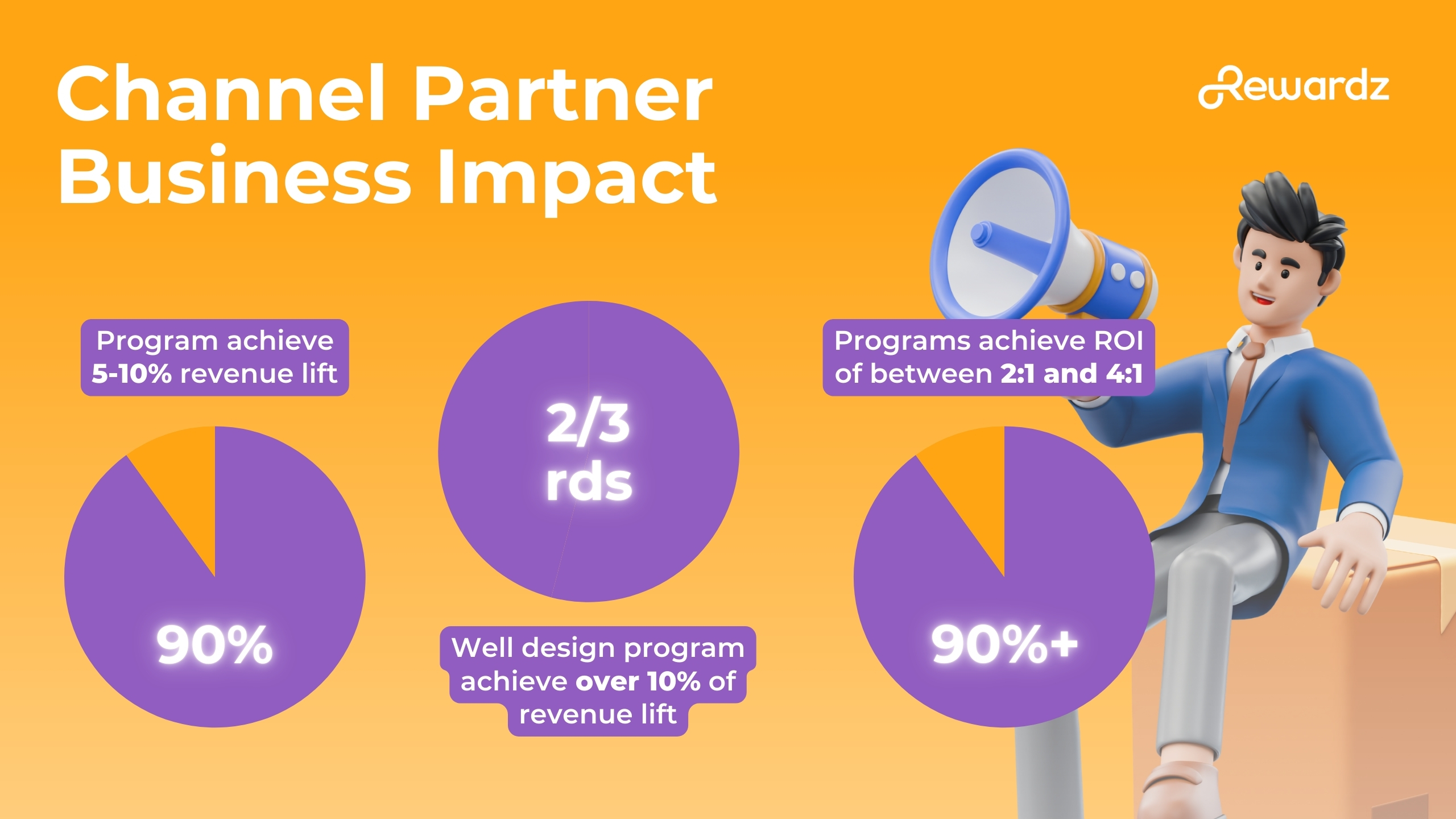Strong partner loyalty directly impacts your bottom line. In fact, research shows that 90% of well-designed B2B loyalty or incentive programmes deliver over 5% year-over-year growth, and more than two-thirds of programs on average achieve over 10%. Engaged and motivated partners sell more, grow into new territories, and represent your brand as part of your extended sales force.