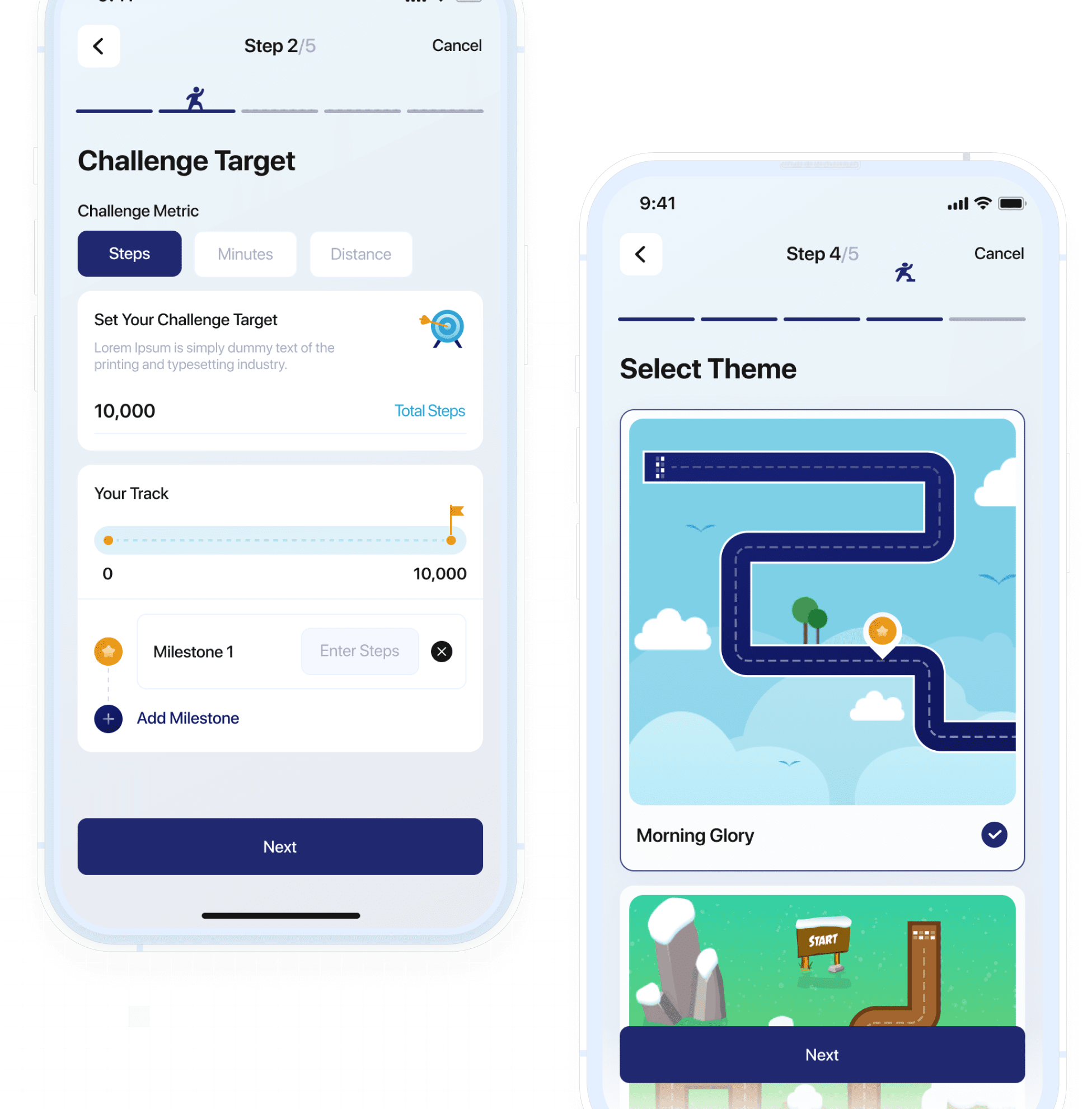Gamify fitness with flexible step challenges: HR-led company-wide or specific team-led, complete with dynamic leaderboards to encourage friendly competition.